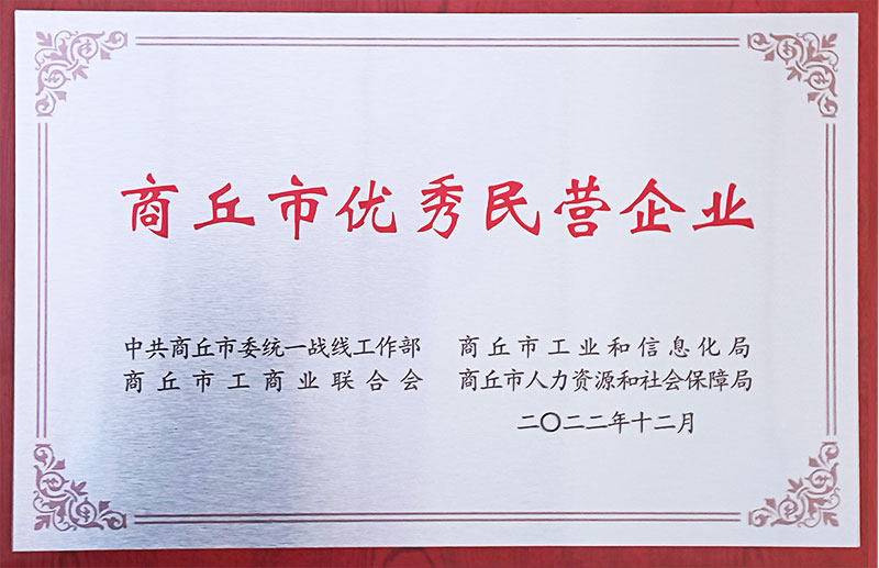 此次榮獲“商丘市優秀民營企業”稱號,是市委、市政府對民營企業取得成果的高度褒獎,體現了中分公司近年來發展充滿活力,卓有成效。